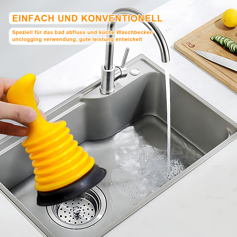 Sink Drain Plunger - Powerful Rubber Plunger For Shower, Kitchen Sink, RV - Yellow