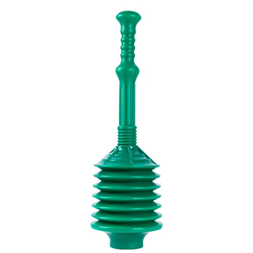 VETTA Professional Bellows Accordion Toilet Plunger, High Pressure Thrust Plunge Removes Heavy Duty Clogs from Clogged Bathroom Toilets, All Purpose Commercial Power Plungers for Any Bathrooms, Green