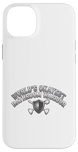 Worlds Okayest Bathroom Warrior Funny Toilet Plunger Shield Case for iPhone 14 Plus