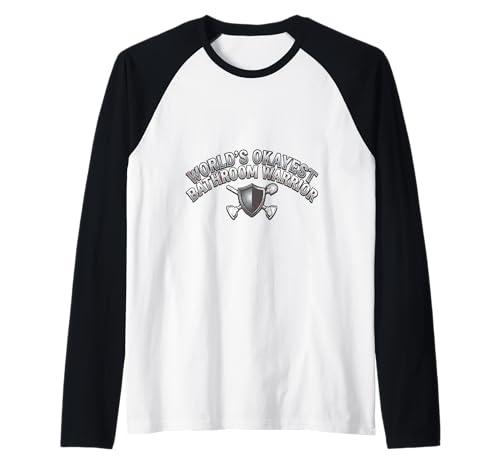 Worlds Okayest Bathroom Warrior Funny Toilet Plunger Shield Raglan Baseball Tee