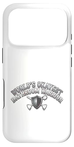 Worlds Okayest Bathroom Warrior Funny Toilet Plunger Shield Case for iPhone 17 Pro