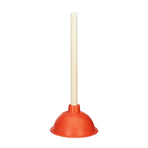 Relaxdays Toilet Plunger Drain Cleaner, Rubber Suction Cup, Detachable Wooden Handle with Eyelet, Bath and Shower, 30 cm, Red/Natural, Wood, 36 x 14.7 cm