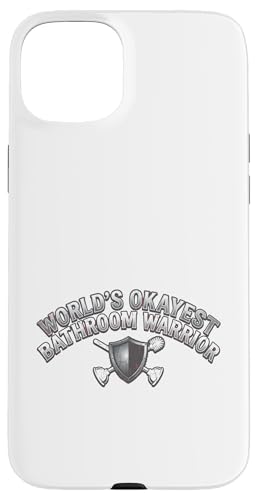 Worlds Okayest Bathroom Warrior Funny Toilet Plunger Shield Case for iPhone 15 Plus