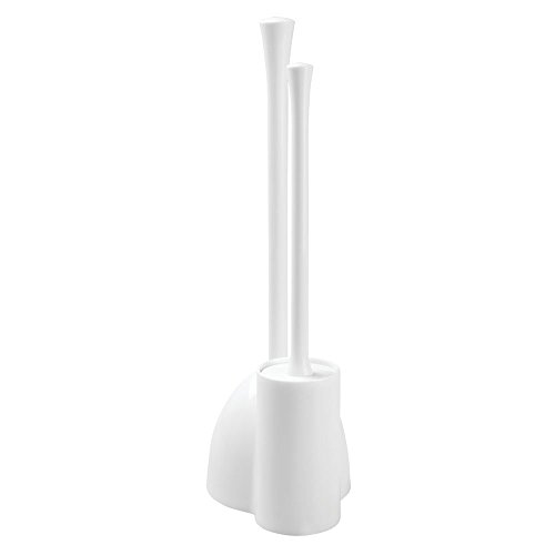 iDesign Una Toilet Brush Holder with Plunger, Plastic Toilet Brush and Plunger Set, White