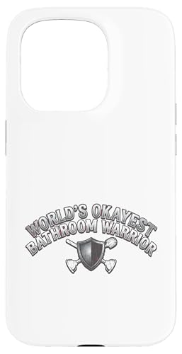 Worlds Okayest Bathroom Warrior Funny Toilet Plunger Shield Case for iPhone 14 Pro