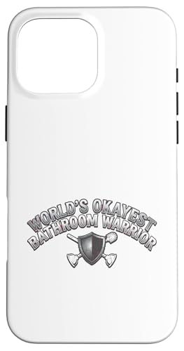 Worlds Okayest Bathroom Warrior Funny Toilet Plunger Shield Case for iPhone 16 Pro Max