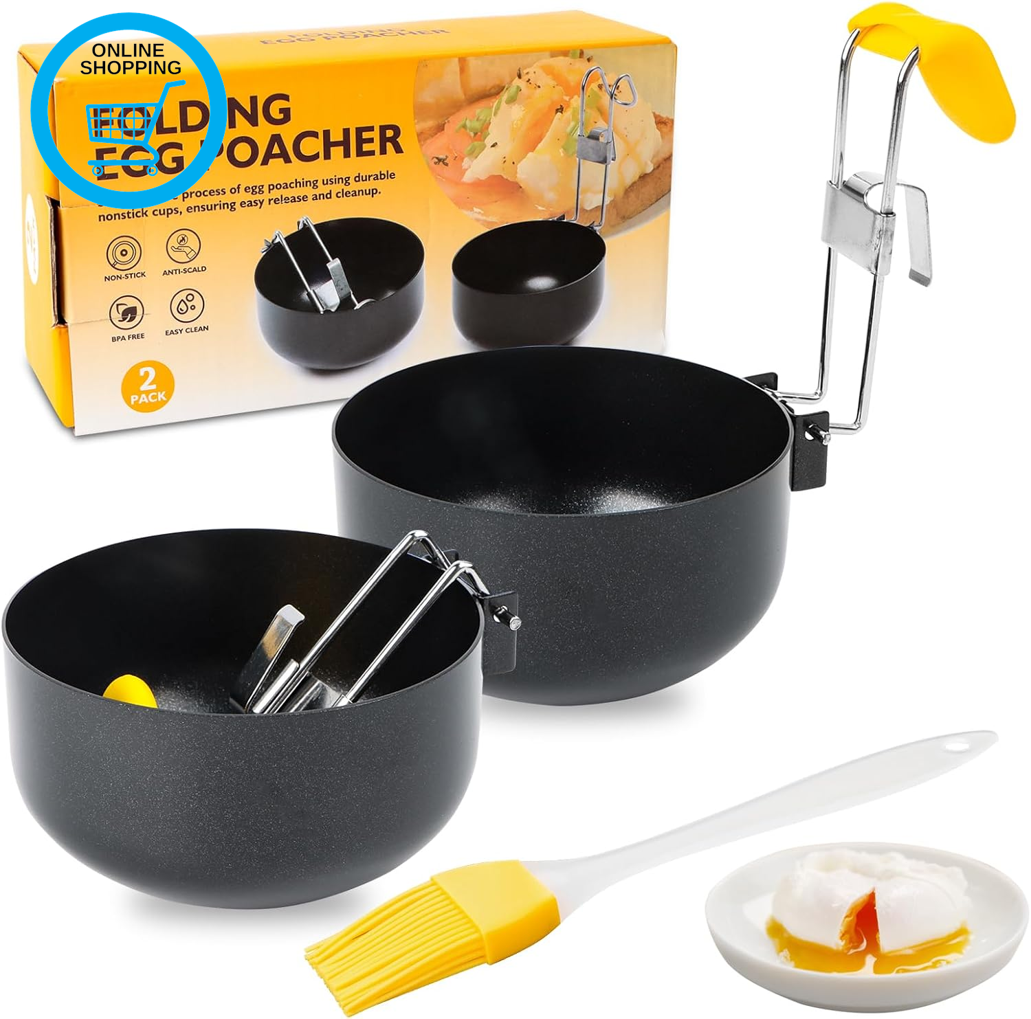 2-Piece Poached Egg Maker, Egg Cooker with Oil Brushnon-Stick Egg Cooker, Foldab