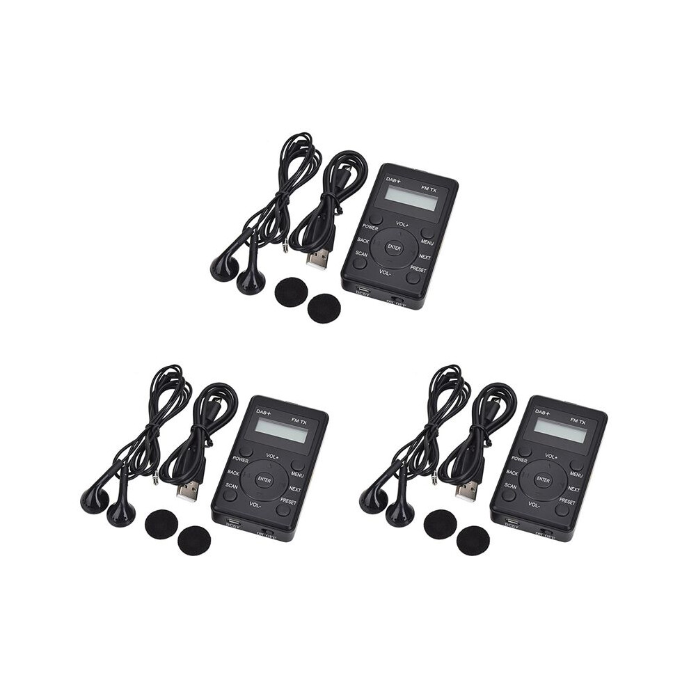 3X Portable Radio Pocket FM DAB+ Digital Display Stereo Receiver LCD Built-in Battery Earphone Support Calendar