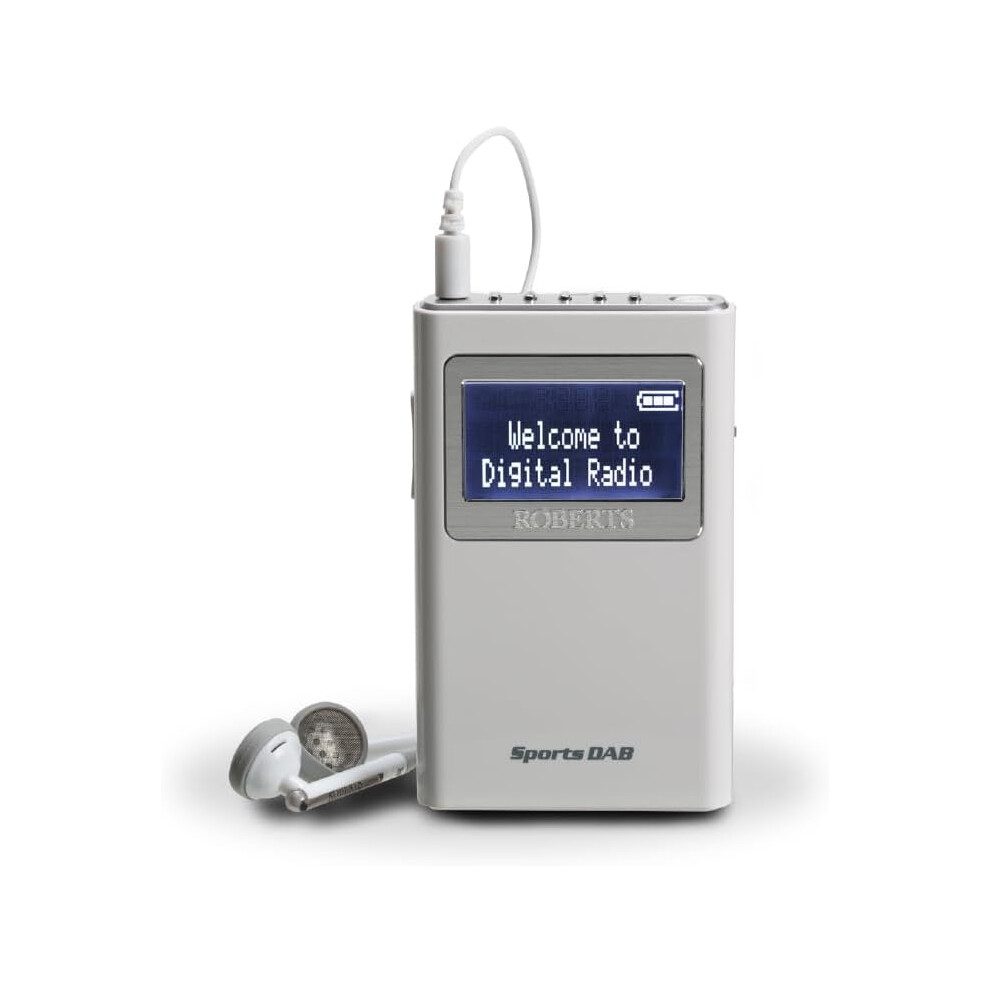 Sports DAB5 Portable DAB Radio DAB/DAB and FM with 10 Station Presets â Pocket-sized Personal Radio including headphones - White