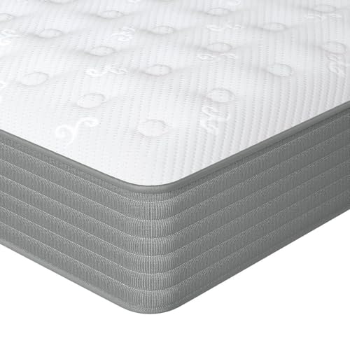 SEZMOONSI 4FT6 Double Mattresses, 10.6 Inch Memory Foam Pocket Sprung Mattress Double Size for Back Pain Relief, Medium Firm Hybrid Orthopedic Double Bed Mattress in a Box (135x190x27cm)