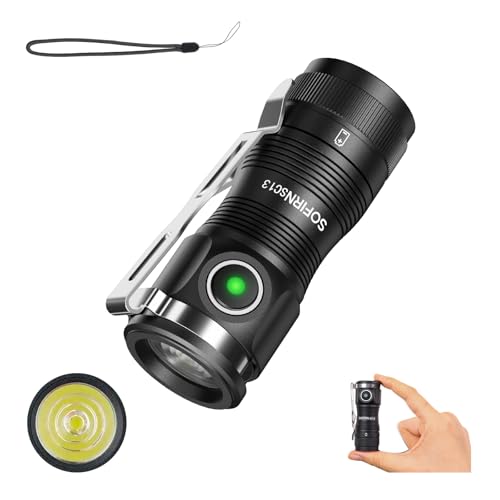 Sofirn SC13 Small Torch Rechargeable, 1300 LM Torches Led Super Bright, 217M Optical Path Distance, Pocket Torch with 5 Modes, IP68 Waterproof, Mini Torch for Camping, Hiking, Emergency, Dog Walking