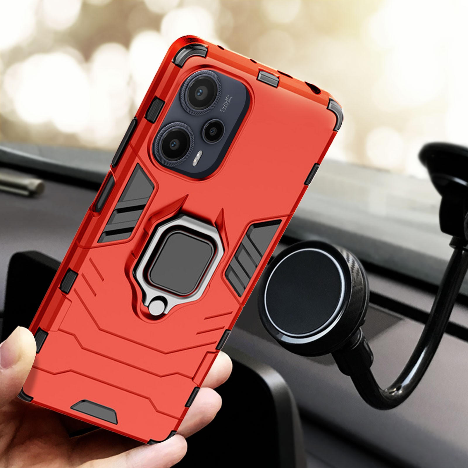Case for Xiaomi Poco F5 Hybrid Shockproof Metallic Ring Support Red