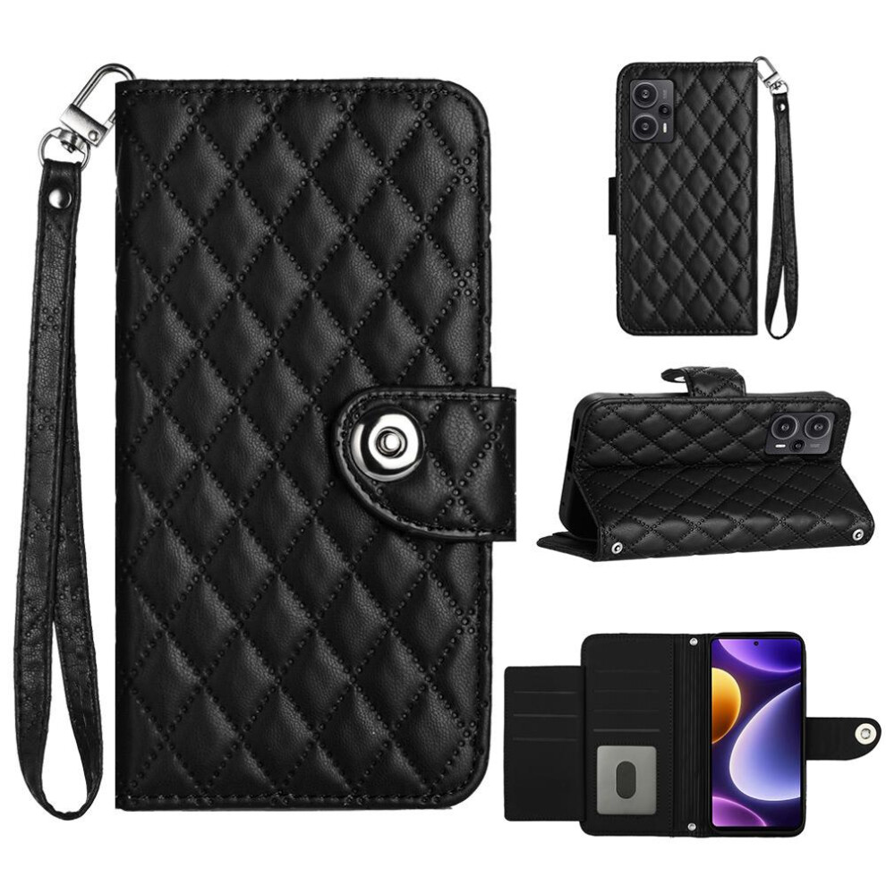 (Black) Case For Xiaomi POCO F5 Wrist Strip Card Holder Shockproof Stylish Protective Wallet Cover