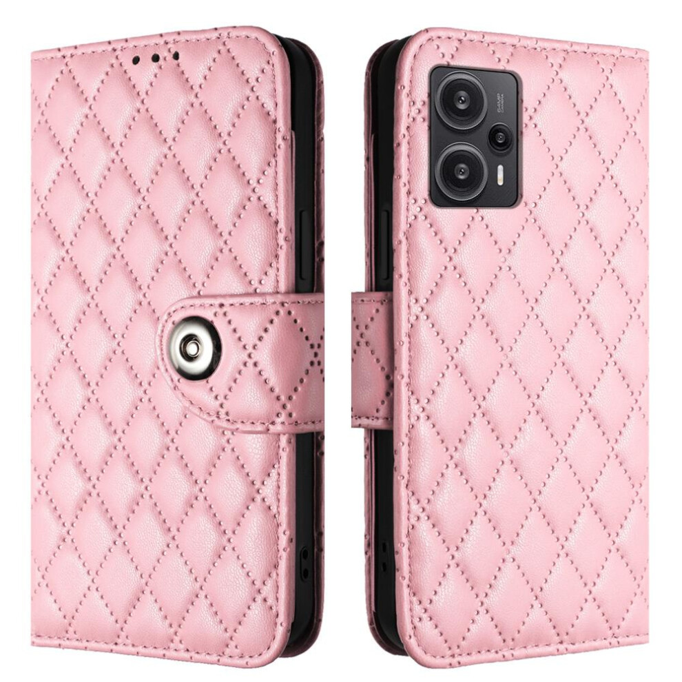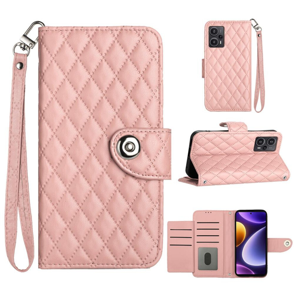(Pink) Case For Xiaomi POCO F5 Wrist Strip Card Holder Shockproof Stylish Protective Wallet Cover
