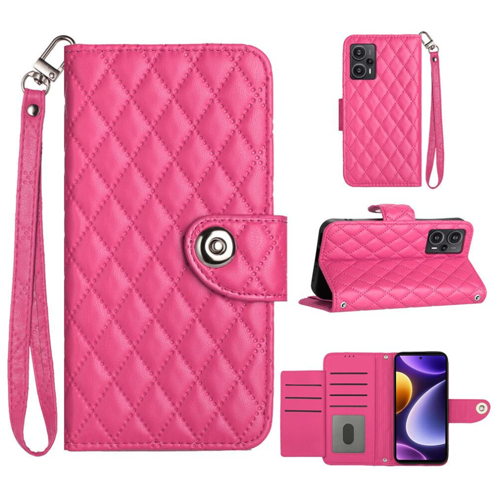 (Rose red ) Case For Xiaomi POCO F5 Wrist Strip Card Holder Shockproof Stylish Protective Wallet Cover