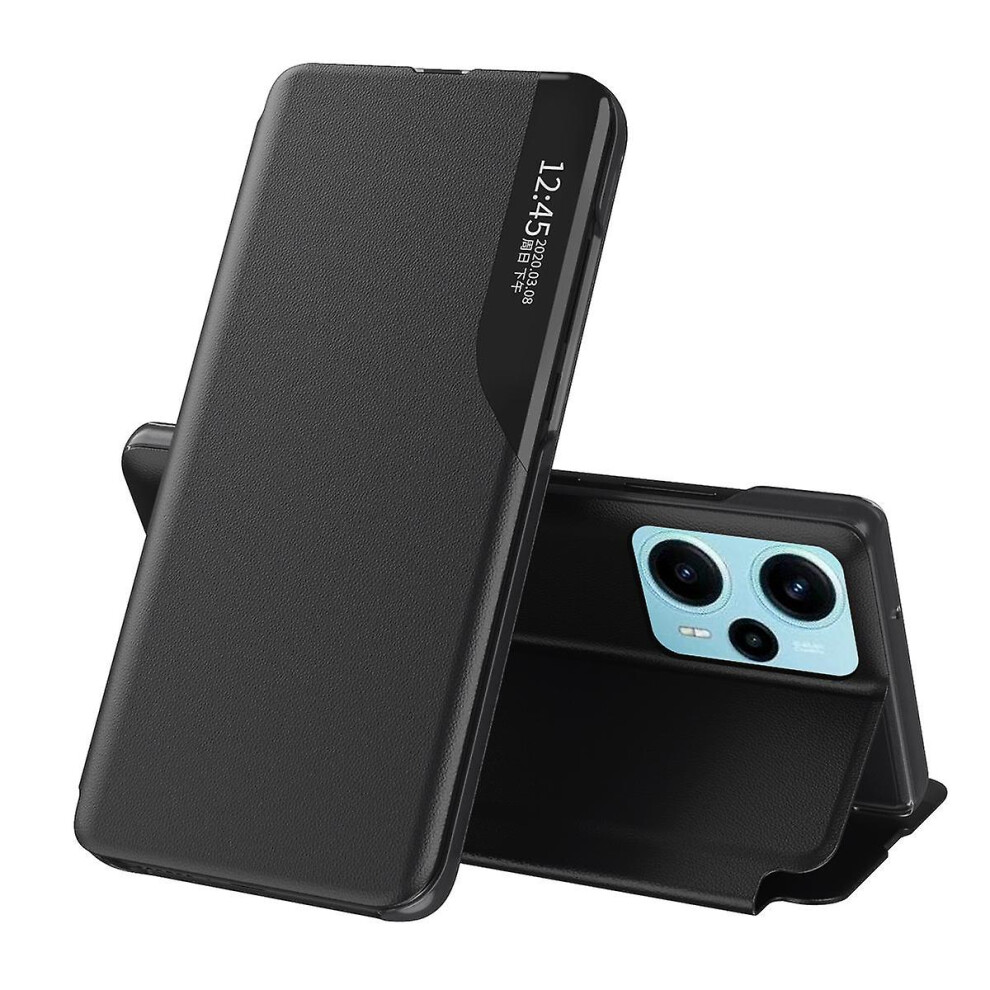 (Black) For Xiaomi Poco F5 5G/Redmi Note 12 Turbo View Window Phone Case PU Leather Anti-Scratch Stand Cover