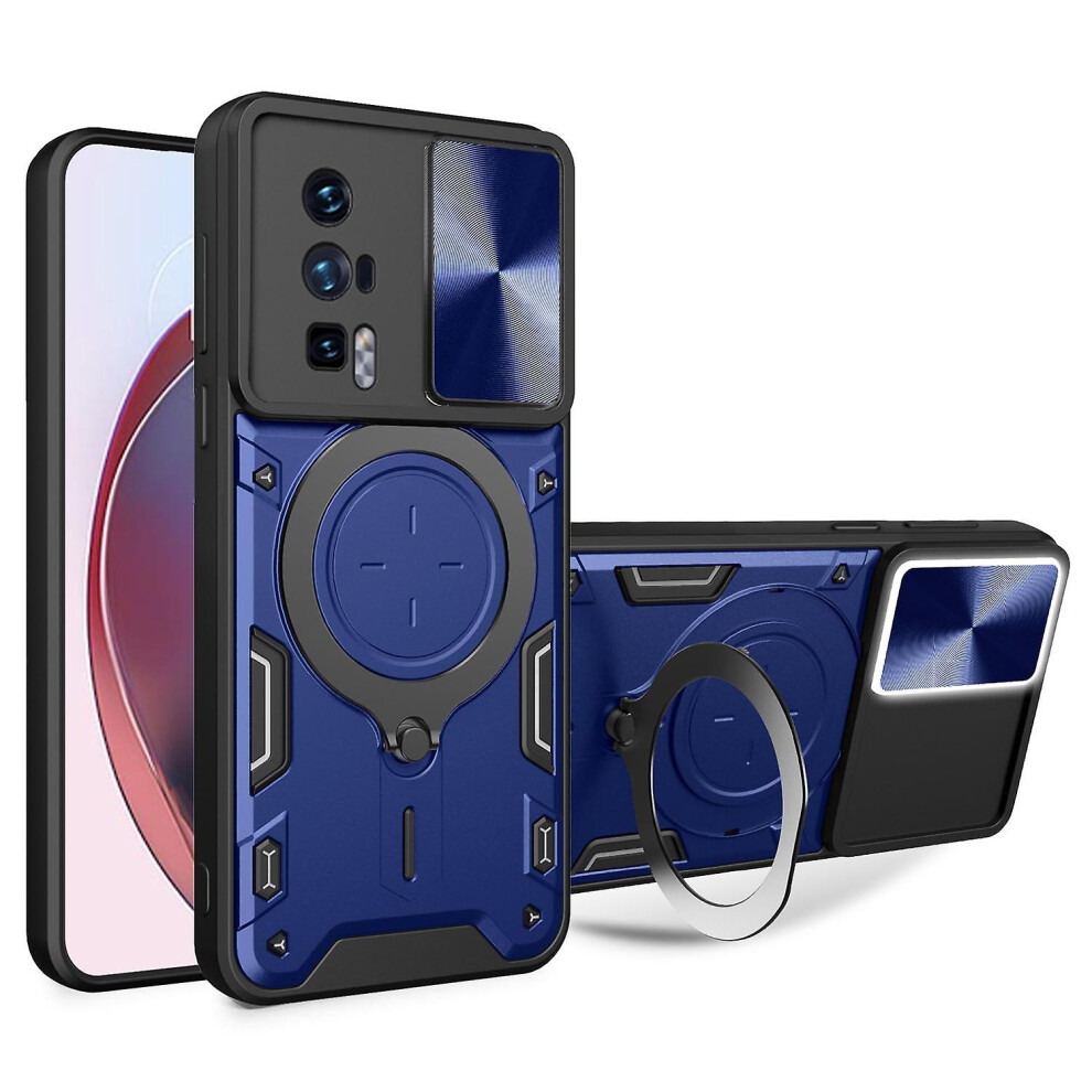 (Blue) Kickstand Phone Case for Xiaomi Poco F5 Pro 5Gmi K60 5G/K60 Pro 5G Shell with Slide Camera Cover