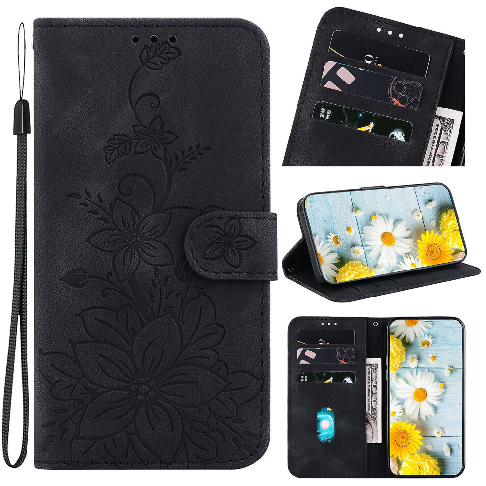 (Black) Compatible With Xiaomi Poco F5 5g Case Magnetic Embossed Flower Pattern Leather Wallet Flip Case For Xiaomi Poco F5 5g