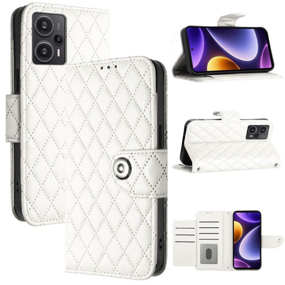 (White) Case For Xiaomi POCO F5 Wrist Strip Card Holder Shockproof Stylish Protective Wallet Cover