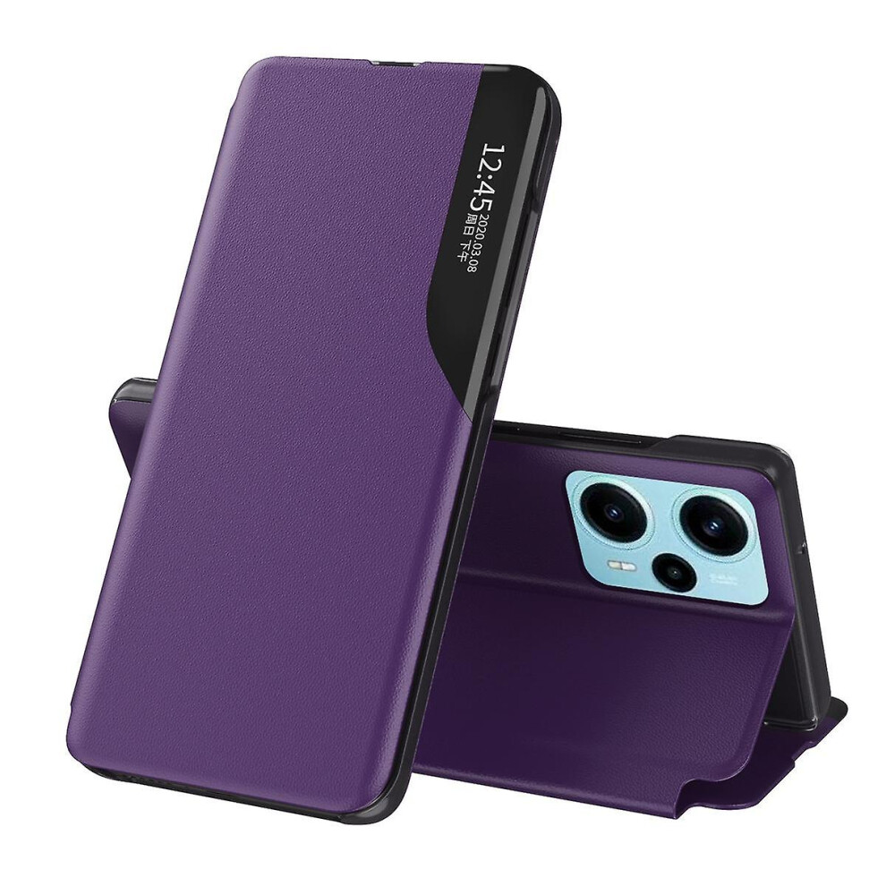 (Purple) For Xiaomi Poco F5 5G/Redmi Note 12 Turbo View Window Phone Case PU Leather Anti-Scratch Stand Cover
