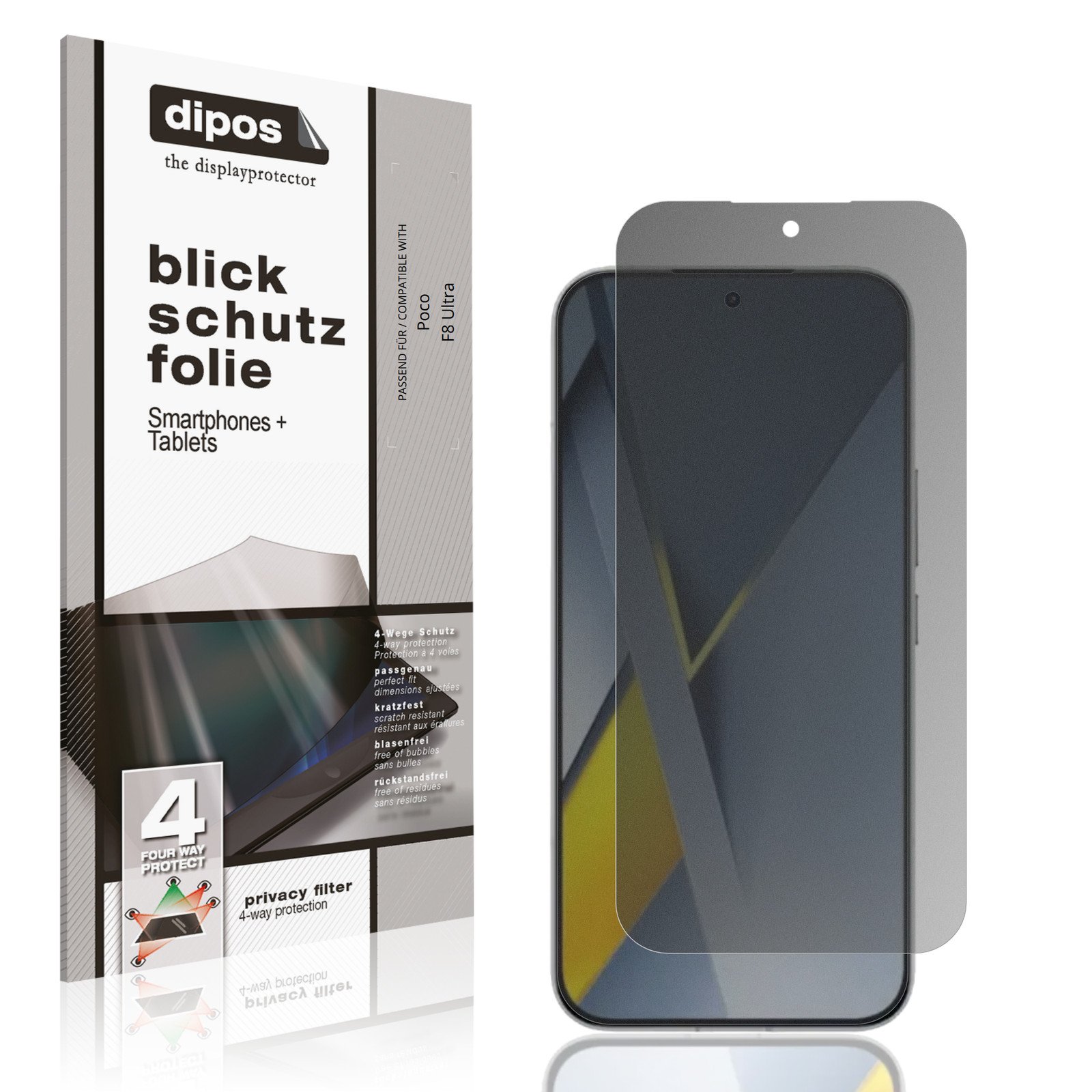 upscreen Privacy Screen Protector compatible with Xiaomi Poco F8 Ultra 5G - Anti-Spy Screen Protection