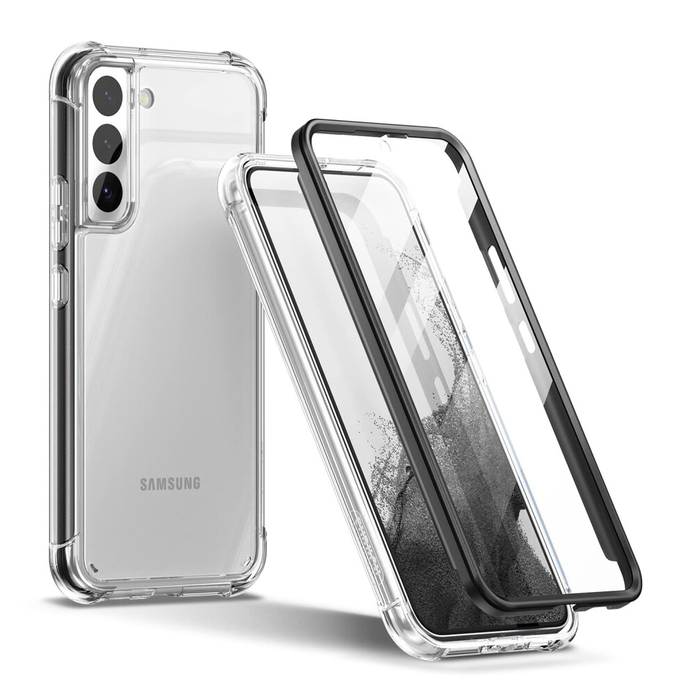 SURITCH Compatible with Samsung S22 Case Clear 5G 6.1??Built in Screen Protector? 360 Full Body Hybrid Protection Hard PC+Soft TPU Bumper Rugged Case