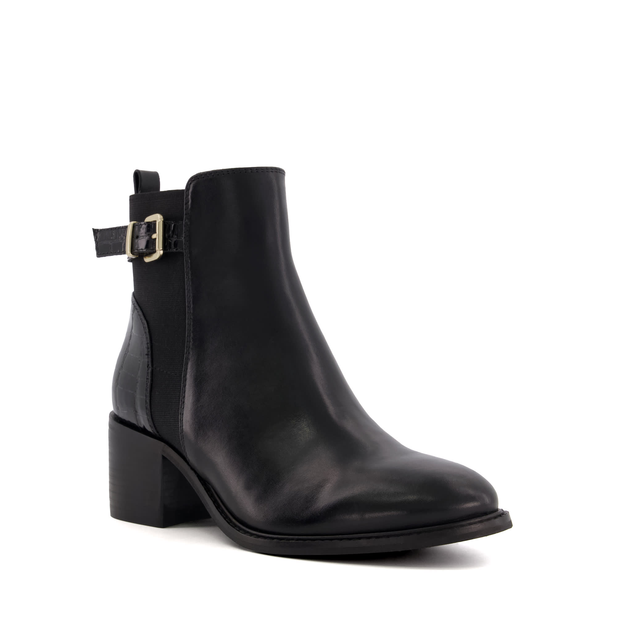 Dune London Womens Ladies POCO Block-Heeled Ankle Boots - Black Leather (archived) - Size UK 3