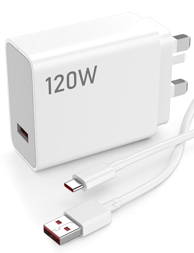 120W USB Plug Turbo/Hypercharge Charger for Xiaomi Redmi Note 14 13 12 11 Pro,USB Fast Charger Plug 6A Turbo Charging Cable 1M Wall Charger UK Power Adapter for Mi 15T 14T 13 12X 11T Pro POCO X7 X6 X5