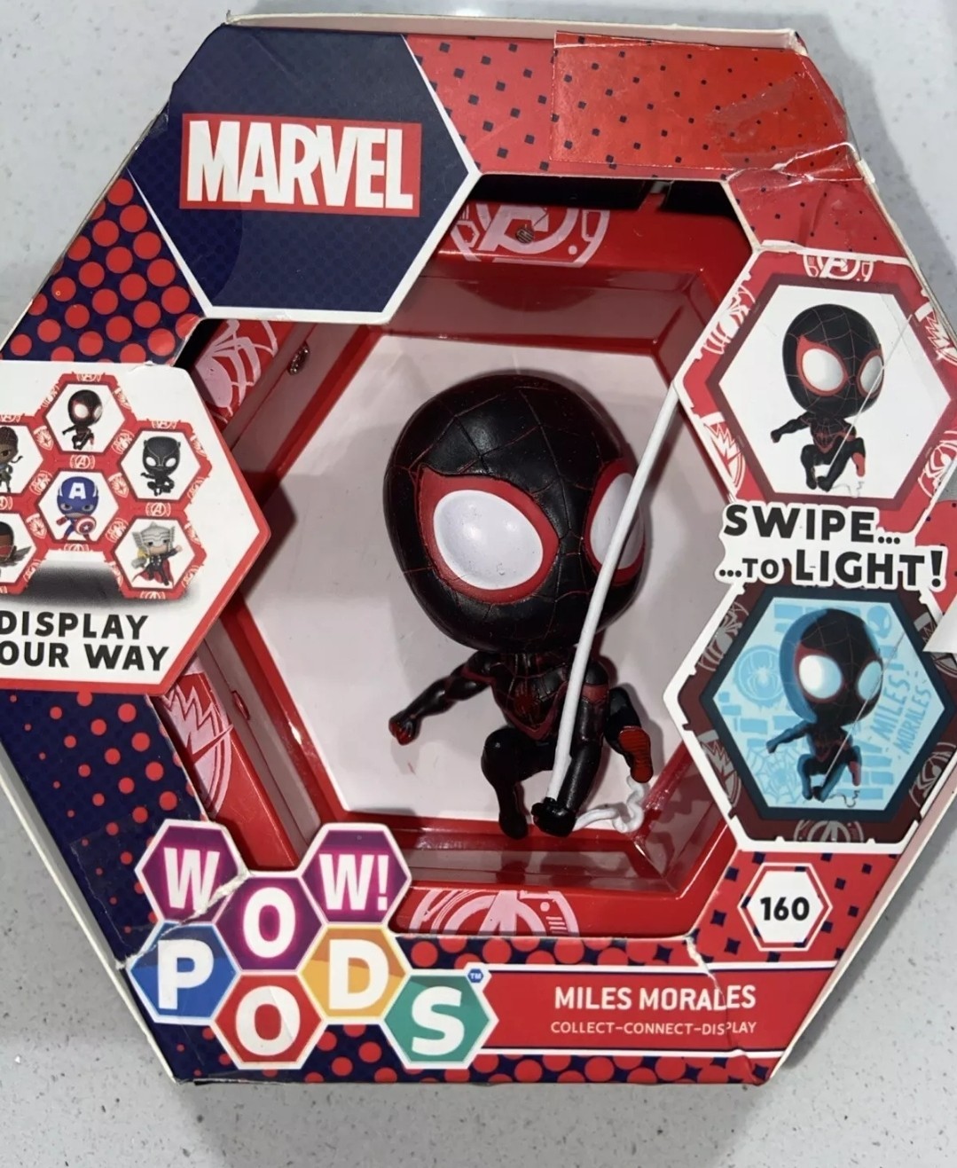 WOW! PODS Spiderman Collection, Miles Morales, Superhero Light Up Bobble Head Figure, Official Marvel Collectable Toys and Gifts