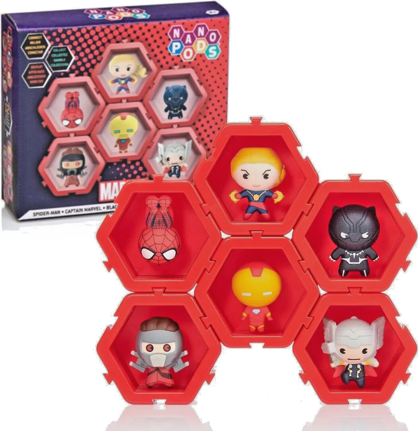 WOW! PODS - Nano Pods Marvel 6 pack | Avengers Superheroes in a Connectable Pod | Toys for Kids and Adult Collectors | Spider-man, Iron Man, Captain Marvel, Thor, Black Panther and Starlord | Wave 1