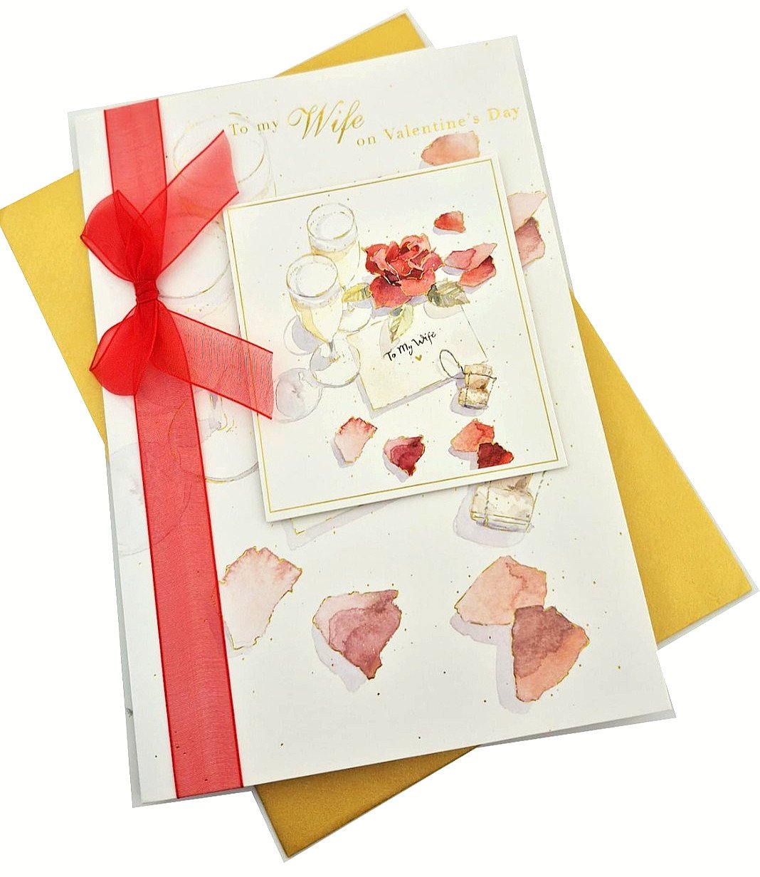 Valentine's Day Card For Wife - Romantic Poem Ribbon Bow Rose Petals Top Quality