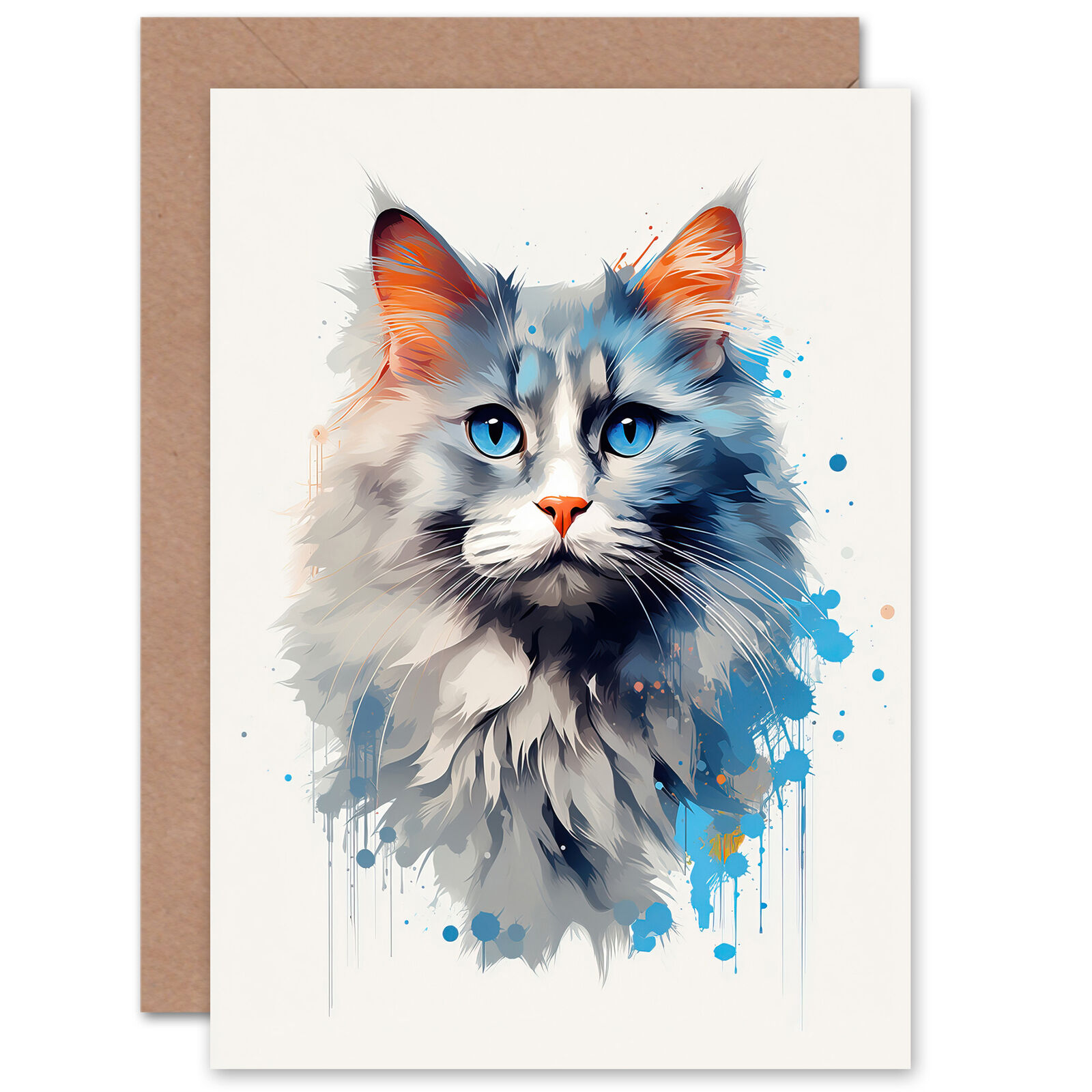 Seal Point Ragdoll Cat With Blue Eyes Pet Portrait Colourful Artwork Painting Sealed Greeting Card Plus Envelope Blank inside