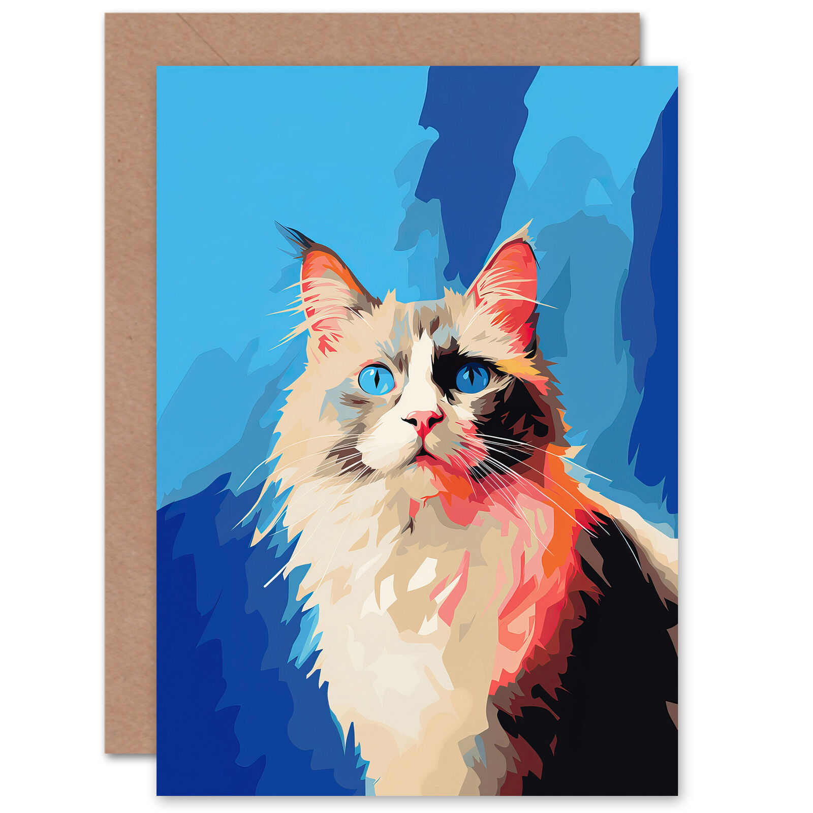 Seal Point Ragdoll Cat Blue Eyes Pet Portrait Colourful Blank Greeting Card