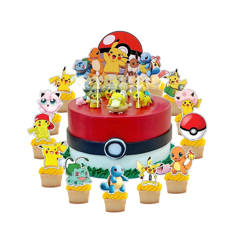 Pokemon Cake Decoration Pikachu Cupcake Toppers Birthday Decorating Pokeball Picks Kids Boy Party Decorations Baby Shower Favors