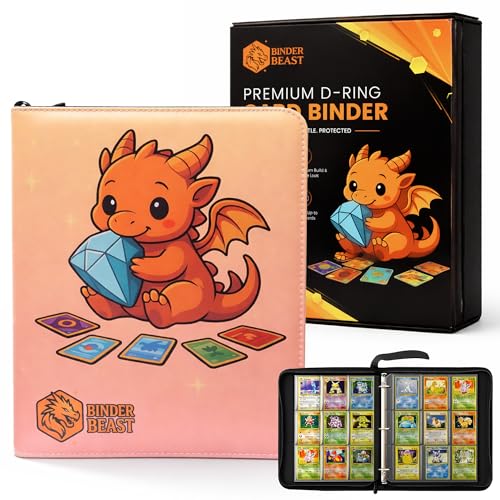 Binder Beast Card Binder for Pokemon Cards, 9 Pocket Trading Card Binder Album for 900 Cards, Toploader Compatible Zip Binder Case, Waterproof TCG Card Folder for Trading Card Collection
