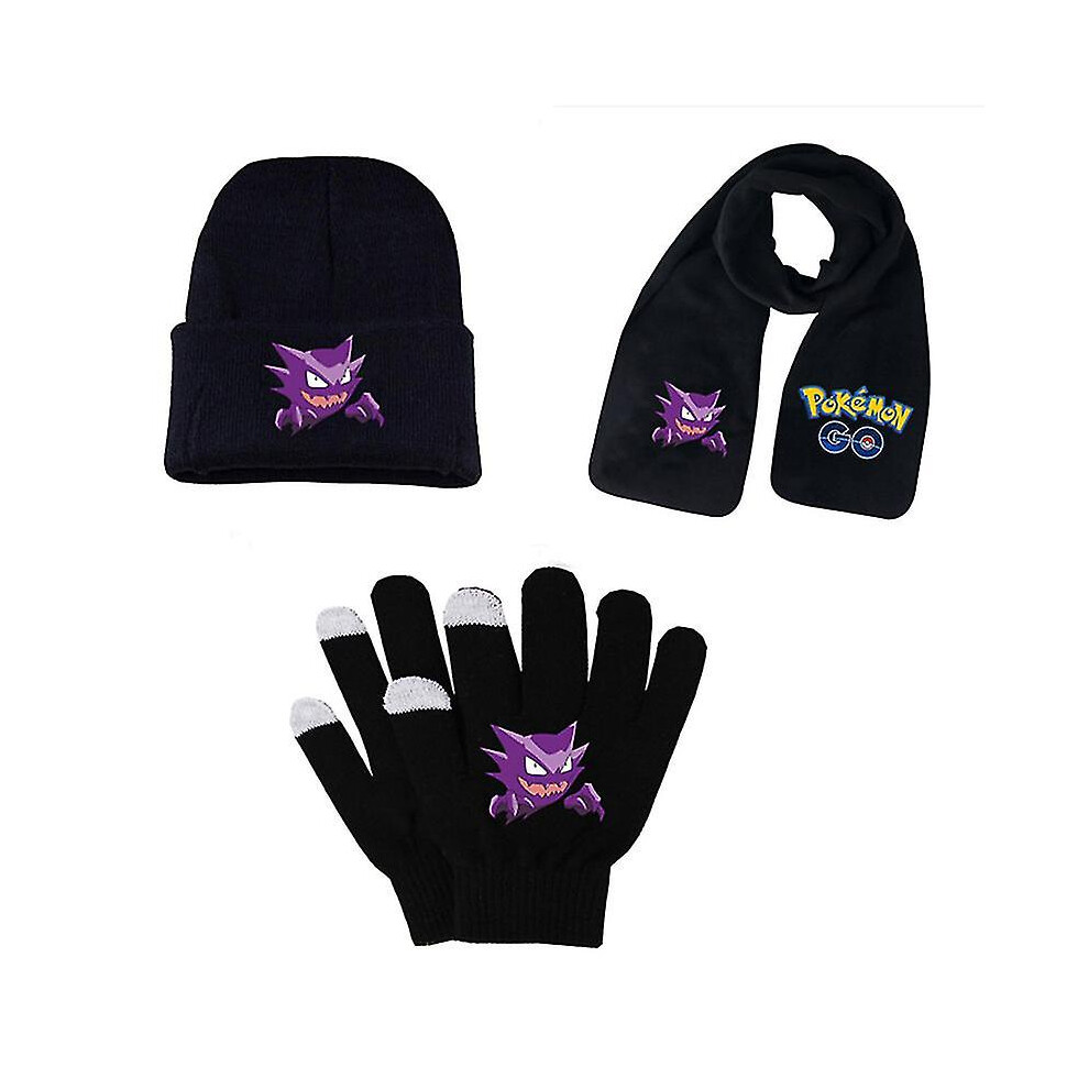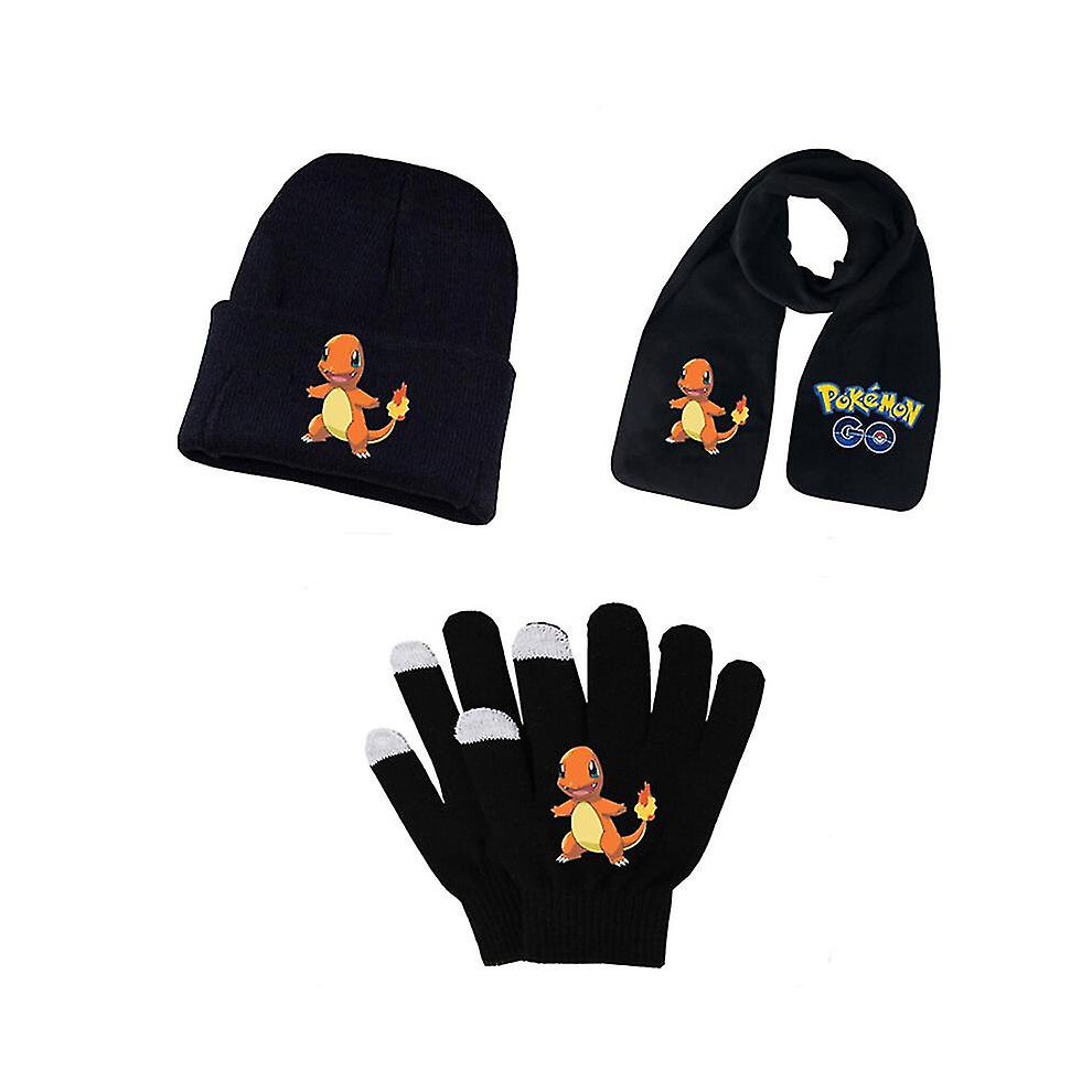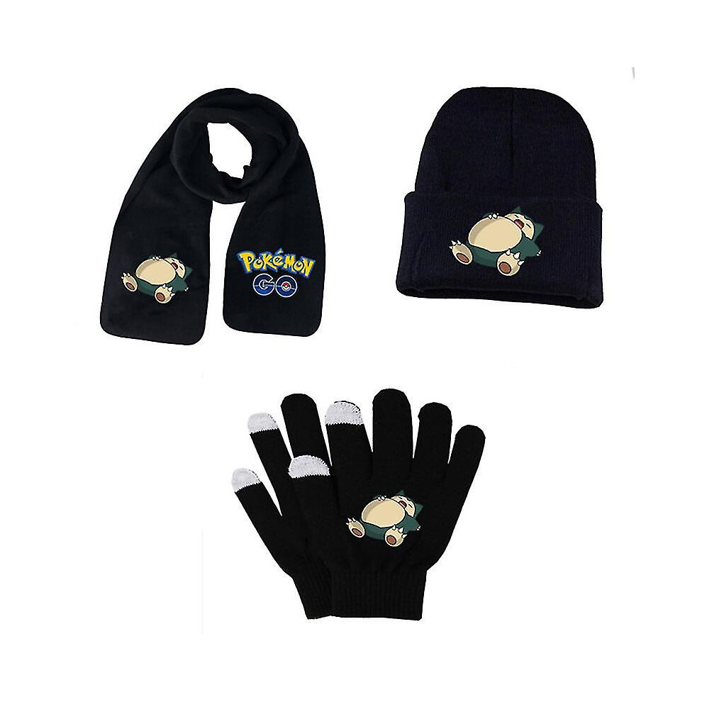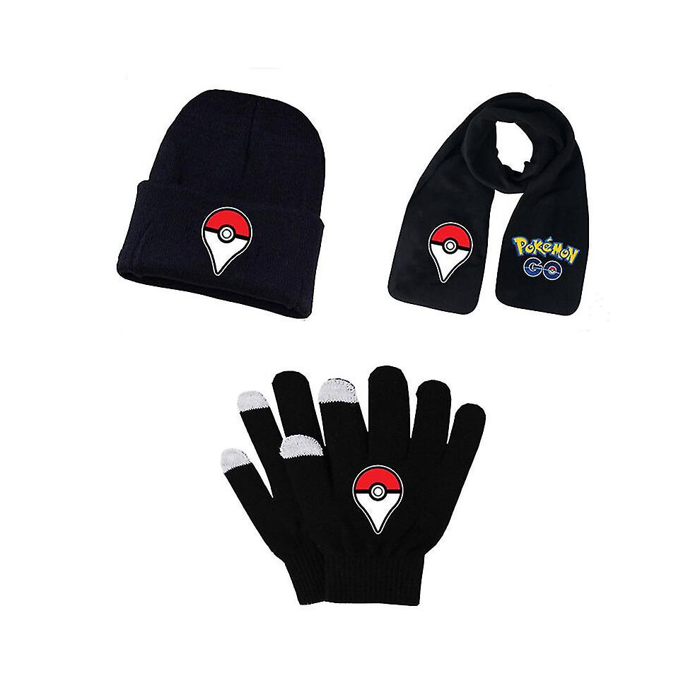 (set 3) Adult Students Autumn Winter Kid Hat Scarf Glove Set Pokemon Pikachu Anime Cartoon Printing Cosplay Touch Screen Riding Gloves