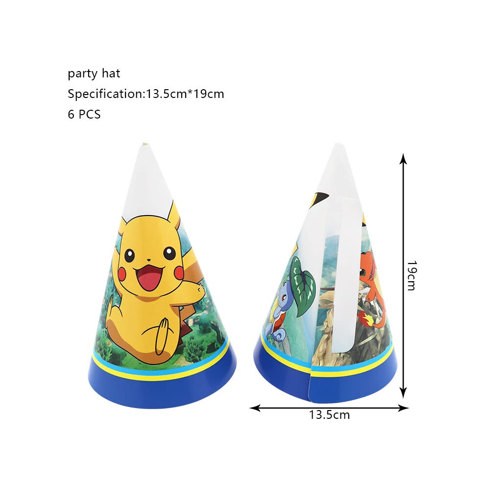 (Party Hat - 6pcs, Other) Pokemon Birthday Party Decoration Pikachu Lightning New Balloon Set Kid Event Supplies Disposable Tableware Banner Mask Back