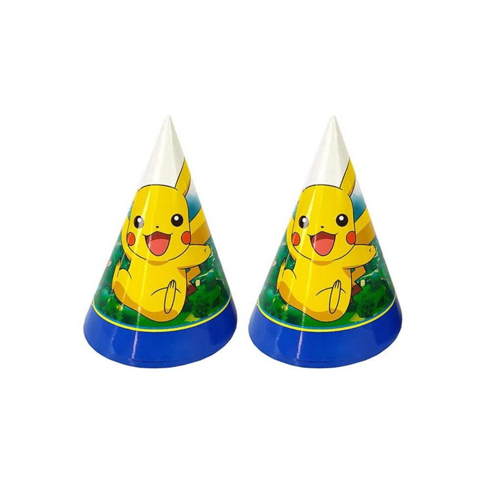 (Party Hat - 6pcs, Other) Pokemon Birthday Party Decoration New Ligntning Pikachu Balloon Kid Event Supplies Disposable Tableware Banner Backdrop Plat