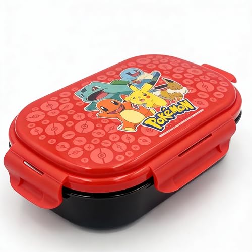 Pokemon Bento Lunch Box with Spork, Pikachu Charmander Bulbasaur Squirtle Eevee Kids Lunch Box, 2 Compartment Leak Resistant Bento Box with 4 Latches, BPA Free Dishwasher Safe Lunchbox 23 x 20 x 8 cm