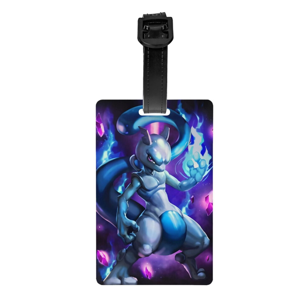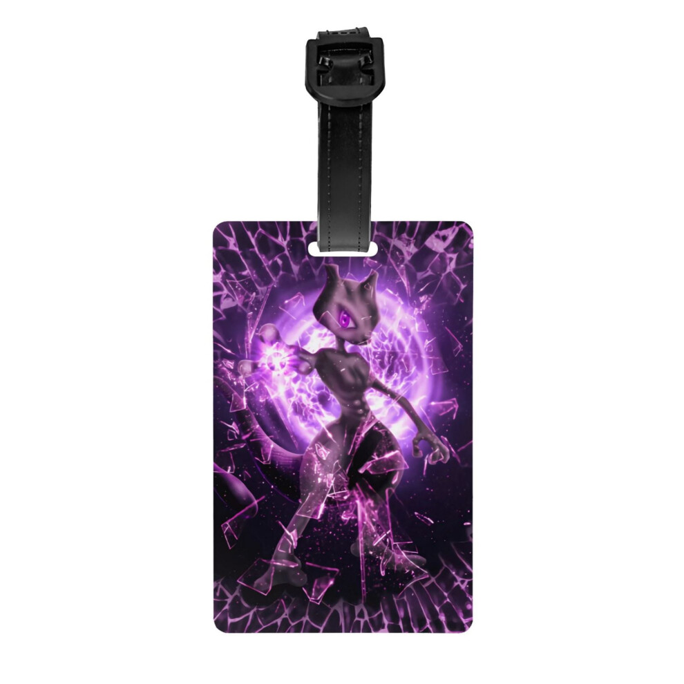 Cute Mewtwo Pokemon Luggage Tag For Suitcase Decorations Supplies Gift Women Men Boy Girl Steel Loop With Privacy Cover Id Label