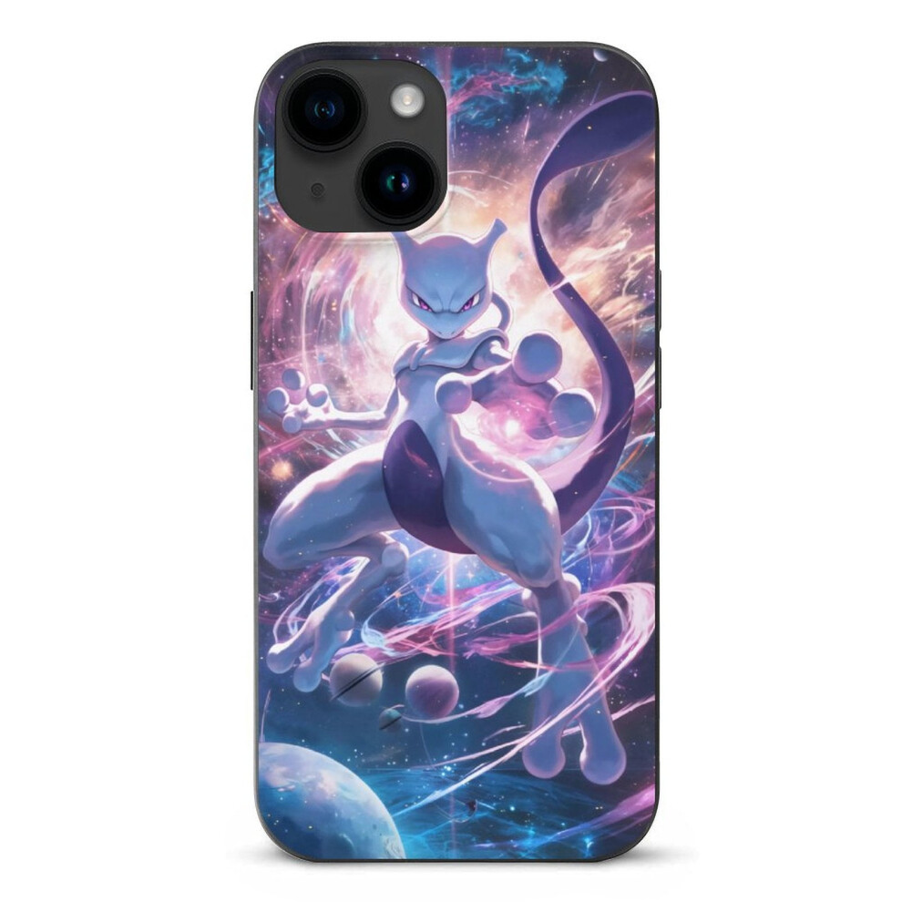Mewtwo Pokemon Mobile Phone Shell Case for compatible with iPhone 15 Case Drop Impact Shockproof TPU Protective Bumper Phone Case Black-style 6.1"