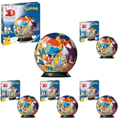 Ravensburger Pokemon 3D Jigsaw Puzzle Ball for Kids Age 6 Years Up - 72 Pieces - No Glue Required - Gifts for Boys and Girls (Pack of 5)