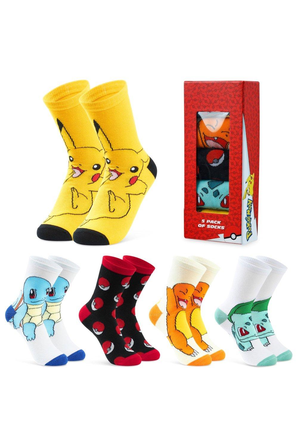 Pokemon Boys Calf Socks, Pikachu Soft Breathable Kids Socks Pack of 5 - Anime Gifts for Boys (Multi, 3.5/6.5 UK)