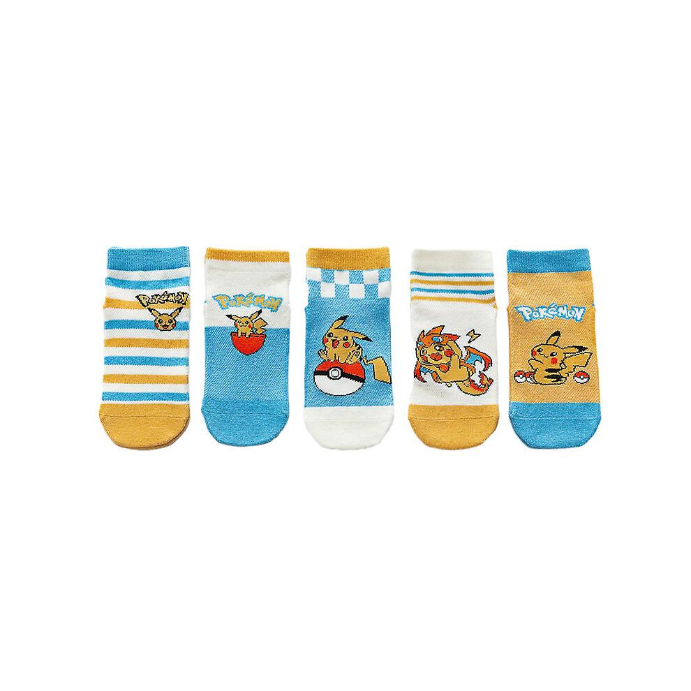 (D, 8-12years old) 5 Pairs Sports Cartoon Children's Socks Baby Boy Pokemon Pikachu Socks Kawaii Child Warm And Soft Gift Kids Girls Clothing
