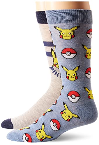 Pokémon Men's 2 Pack Crew Socks Casual, Blue Grey Multi, 9-13 UK