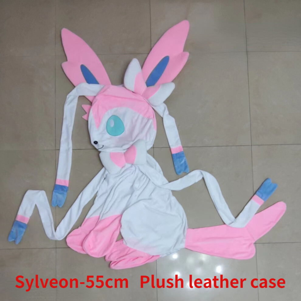 (Sylveon-55cm) Lucario Eevee Giant Pokemon Semi-finished Leather Holster Umbreon Plush Soft Stuffed Doll Cinderace Zeraora Dialga Toys for Kids