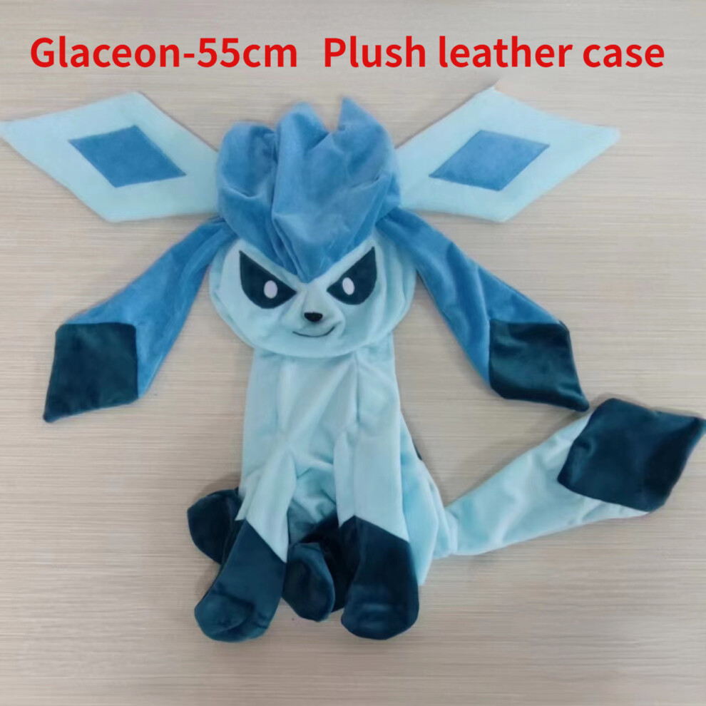 (Glaceon-55cm) Lucario Eevee Giant Pokemon Semi-finished Leather Holster Umbreon Plush Soft Stuffed Doll Cinderace Zeraora Dialga Toys for Kids