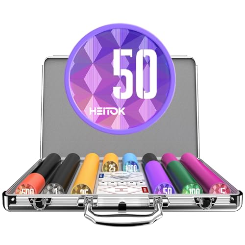 HEITOK 1000 Piece Poker Chip Set With Aluminum Case 11.5g Weighted Numbered Casino Chips For Texas Holdem Blackjack Tournament And Adult Game Night With Cards And Buttons