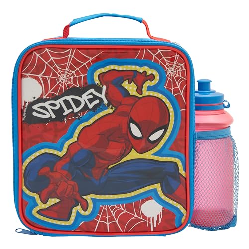 Marvel Spider-Man Box 500ml Polar Gear-Back Supplies Spidey Boys Kids Insulated Lunch Bag School Water Bottle Combo Set-Spiderman Gifts, Polyester, Blue