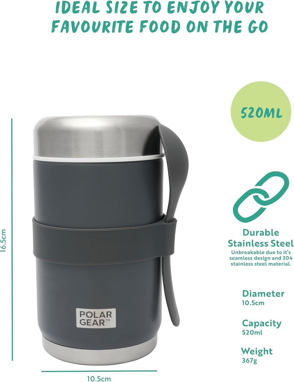 Polar Gear 520ml Insulated Food Flask with Spoon – Stainless Steel Thermal Lunch